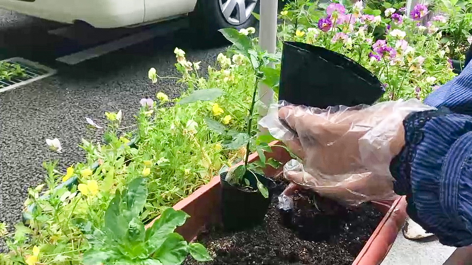 本日は大きくなってきた「唐辛子」をプランターへ植え替える作業です。