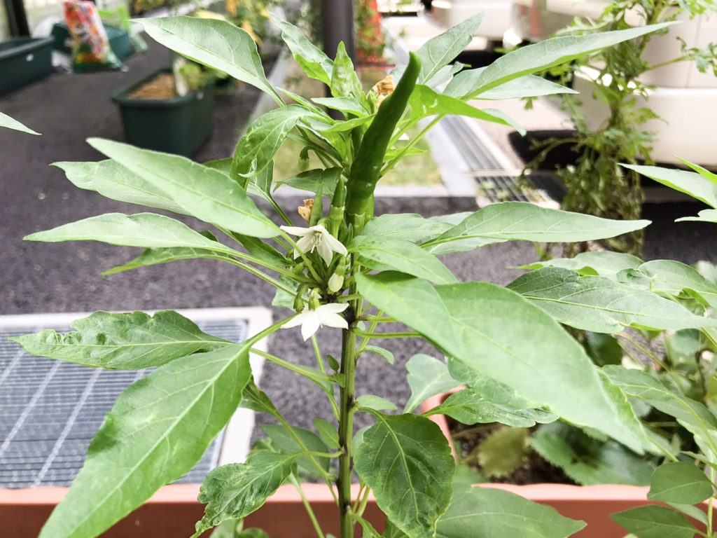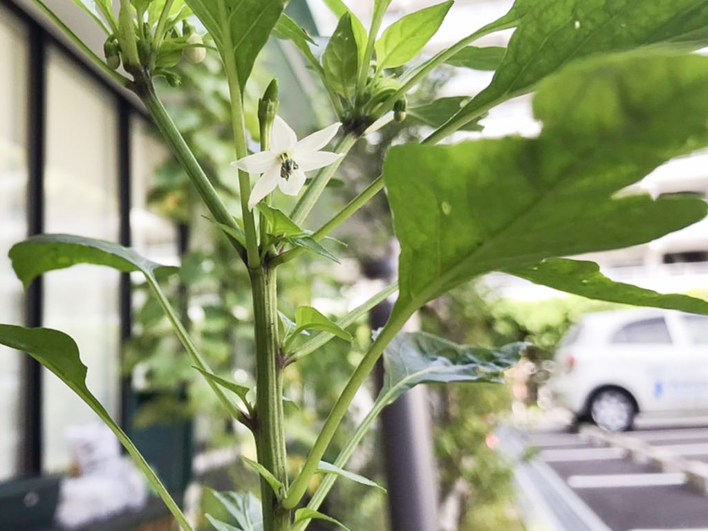 6月末に植え替えをしてから、成長を見守ってきた「唐辛子」の花が開花しました!