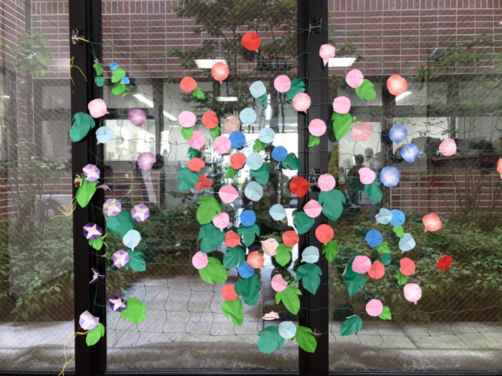 いよいよ梅雨明け!?という時期を意識して、デイケアの装飾を「朝顔」にしました。