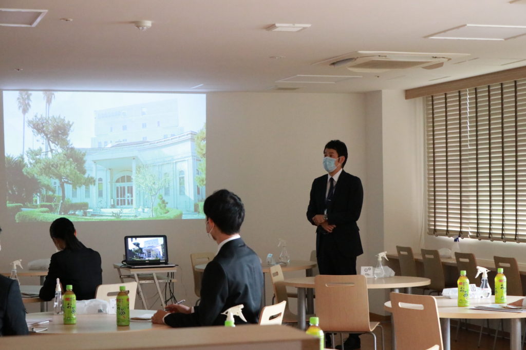 新型コロナウイルス感染対策として人数制限を設け、病院概要のご紹介後は職種別での院内見学と質疑応答を行いました。