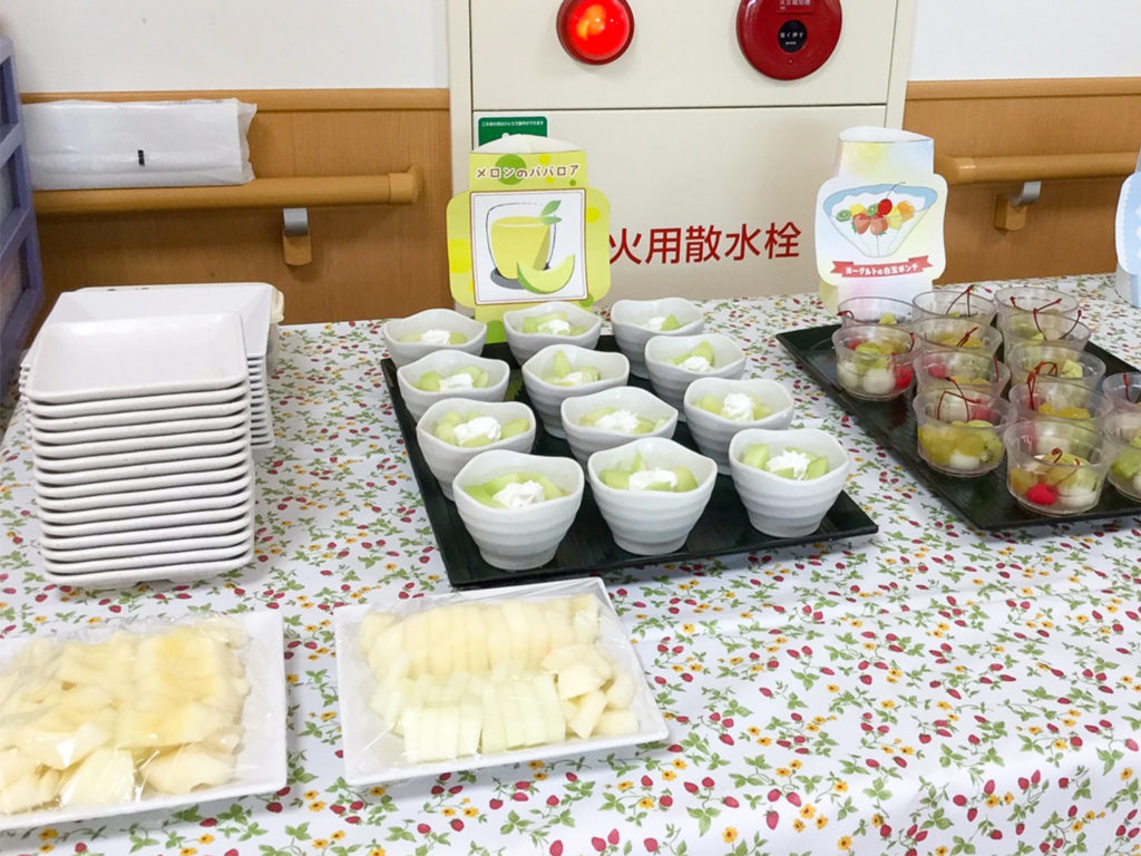 さっぱりと食べられる「ヨーグルトのフルーツポンチ」や「メロンのババロア」「カステラアイス」などが好評でした。