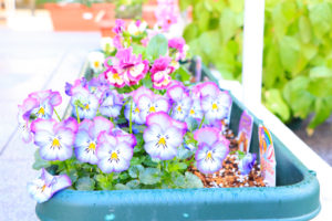 この春はデイケアの入り口にチューリップとビオラの花がたくさん育ちました。