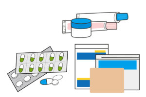 薬には、口から飲む「内服薬」と皮膚などに塗ったり貼ったり用いられる「外用薬」があります。内服薬は全身に副作用が出る可能性がありますが、全身に効果が現れます。外用薬は肌に合わない可能性はありますが、副作用は限られた範囲にのみ出ることが多く、ひとつの部位の治療に有効です。