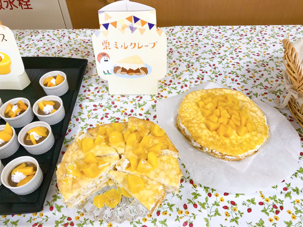 また、生地のあいだにもたっぷりと栗を使用し、トッピングにもたっぷりと栗を乗せた「ミルクレープ」も大好評でした。「また作って!」という声をいただきましたので、季節に合わせてアレンジしていきたいと思います。