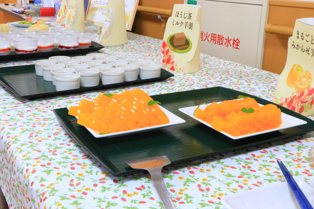 さっぱり食べたいというお声にはゼリーと羊羹をご提供しました。最近話題になっている「まるごとみかんゼリー」に挑戦しました。