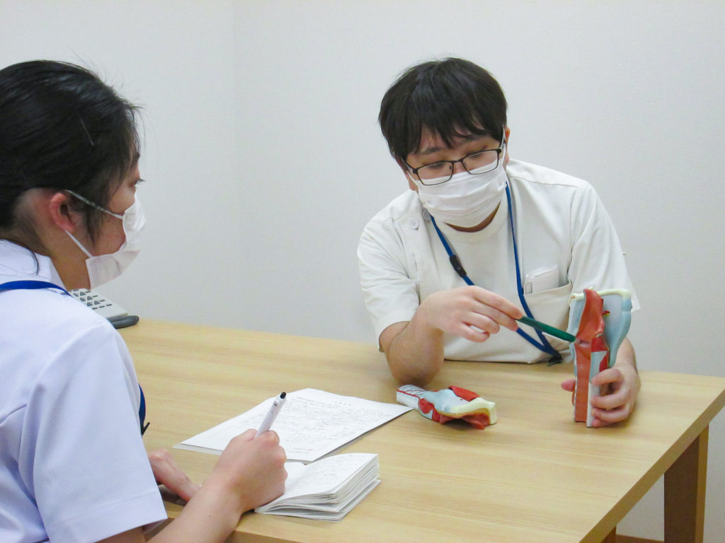 毎年リハビリテーション部では多数の養成校から実習生を受け入れ、臨床業務以外に実習生指導にも力を入れています。未来の言語聴覚士育成のために、がんばって教えています!