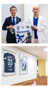 サッカーで元気や勇気を届ける、新型コロナウイルスに負けない!プロジェクトの一環で作られた、限定ユニフォームシャツを寄贈いただきました。また、宇佐美選手からもサイン入りユニフォームを寄贈いただきました。ユニフォームは1階入り口と小児科前に展示中です。