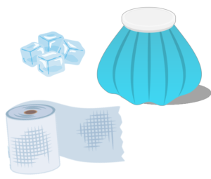 - Icing(アイシング)…炎症を抑えるためにビ二ール袋やアイスバッグに氷を入れて、1回15-20分ほど冷やす。痛みが出たら再度冷やします
