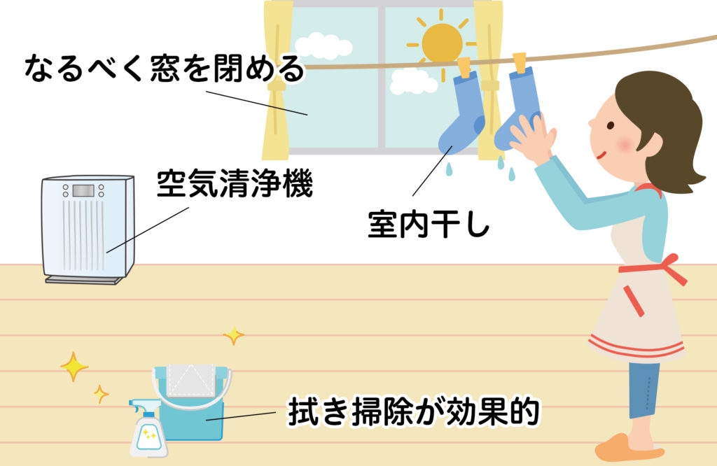 - 洗濯物はなるべく部屋干しに