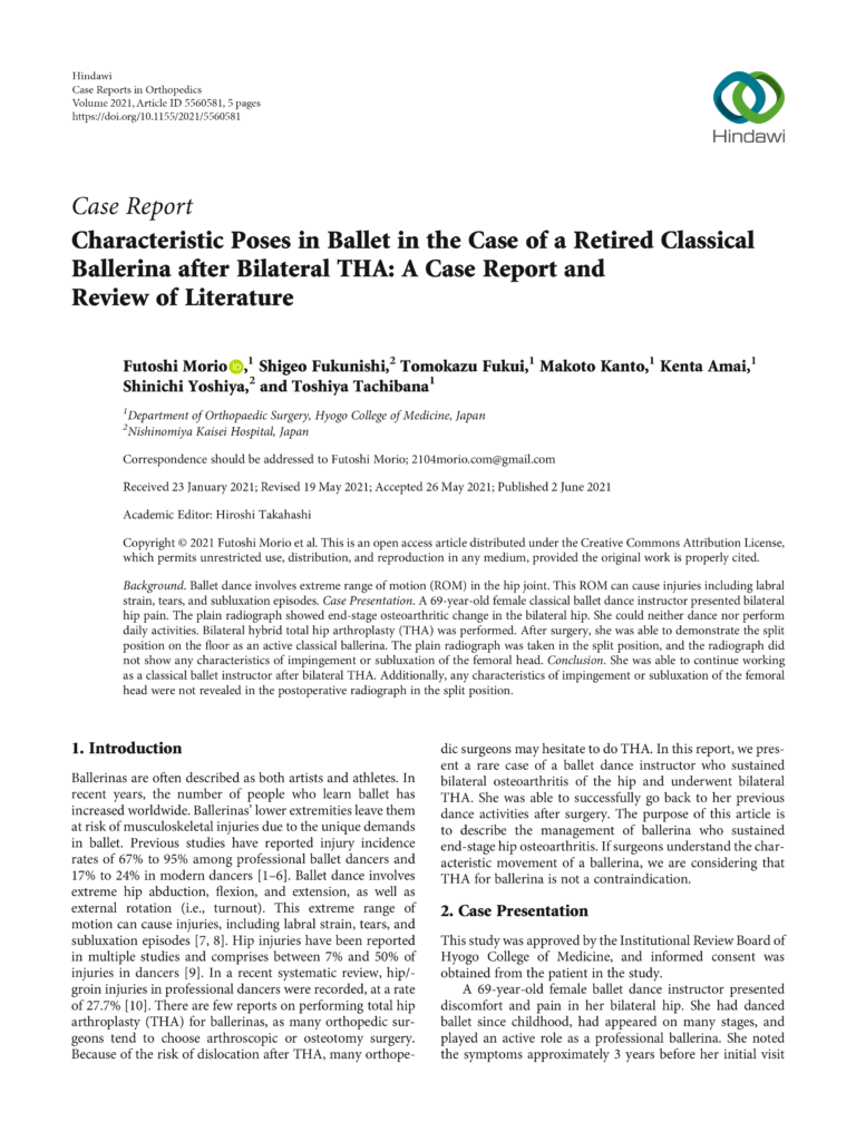 Ballerina after Bilateral THA: A Case Report and Review of Literature」論文が、この度「Case Report in Orthopedics」という学会誌に掲載されました。