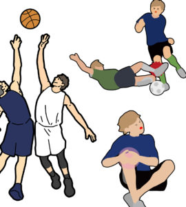 - サッカーやラグビー、バスケットボールなどの接触プレーがきっかけで起きた、もしくは接触はなく着地動作や切り返しの動作がきっかけで起きた