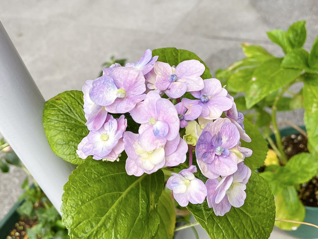 デイケアの壁の装飾を見た利用者さんから、紫陽花のおすそわけをいただき、デイケアの入り口で育てていました。早朝の涼しさと、ほどよい晴れと雨に恵まれ、グングン成長して大きくなりました。
