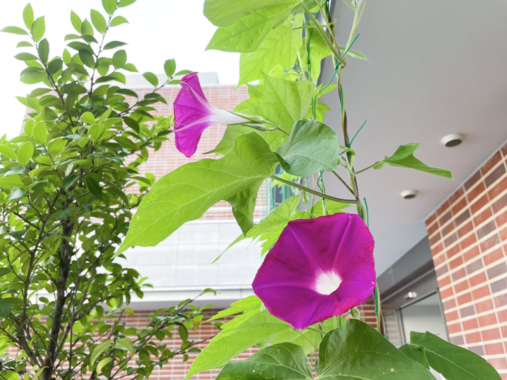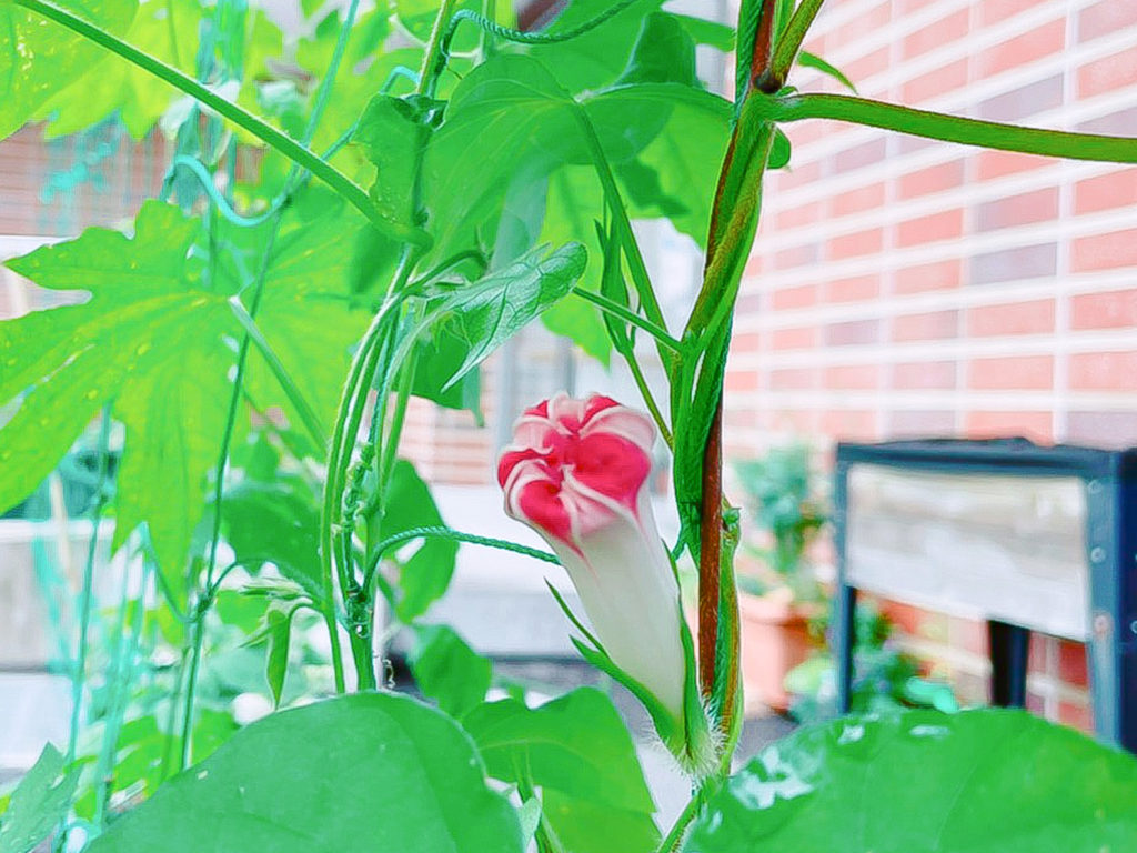 昨日から「まもなく咲くぞ!」という赤いオーラを放っていました。利用者さんと「次、見たときには咲いてるはず!!」と笑っていました。