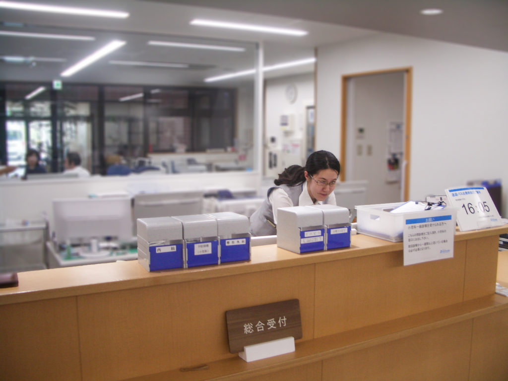 病院の入り口から正面に見える会計や手続き窓口として