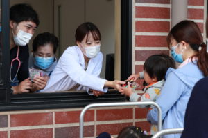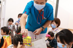 「子どもたちには楽しい思い出を」と昨年よりも大勢の職員が対応することとなり、あたたかく小児科外来や駐車場などで見守っていただきました患者さんやご家族の方々に感謝いたします。