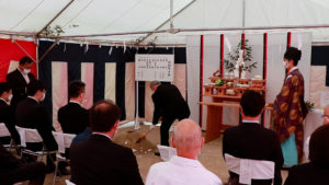天候に恵まれ、快晴の中で地鎮祭を迎えることができ、工事の安全を祈願していただきました。患者様およびご利用される方々には、工事車両の出入りなどでご不便をおかけいたしますが、安全第一にて進めてまいりますのでご理解いただきますようお願いいたします。