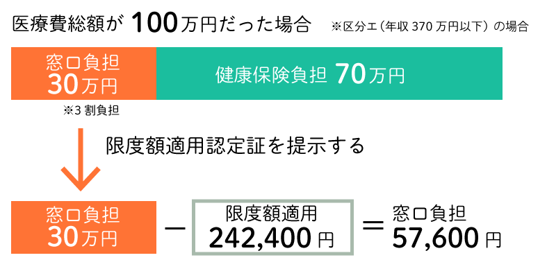 70歳以上の方で医療費負担が高額になる場合は、加入している公的医療保険に「限度額適用認定証」を活用いただけます。入院までに「限度額適用認定証」の交付を受け、病院で保険証と併せて提示すれば、ひと月の支払額が自己負担限度額までに抑えることができます。
