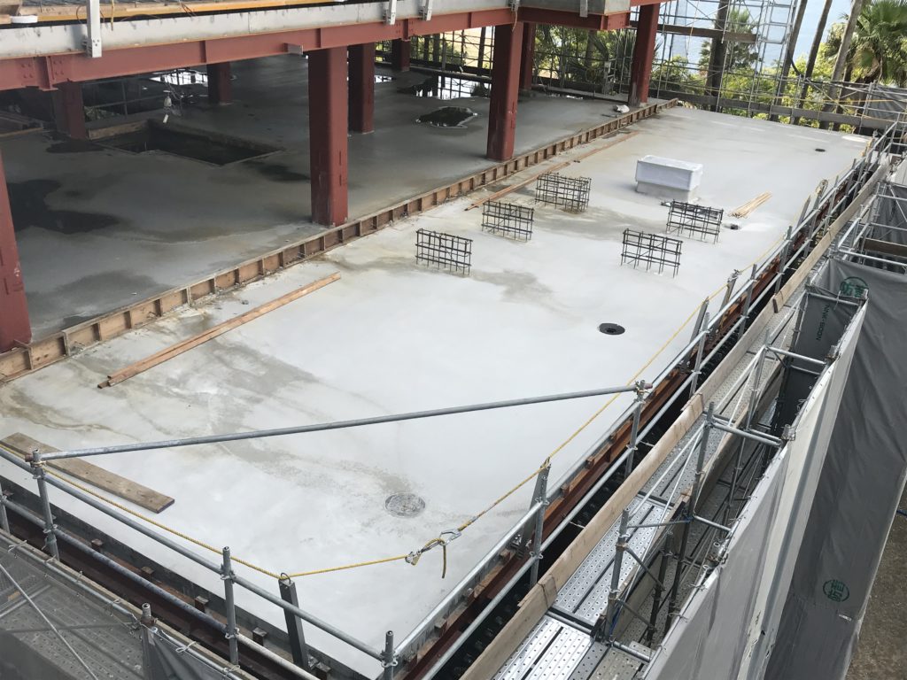 現在、5階の床面が仕上がっています。その様子を、今の病棟から新病棟側を撮影してみました!