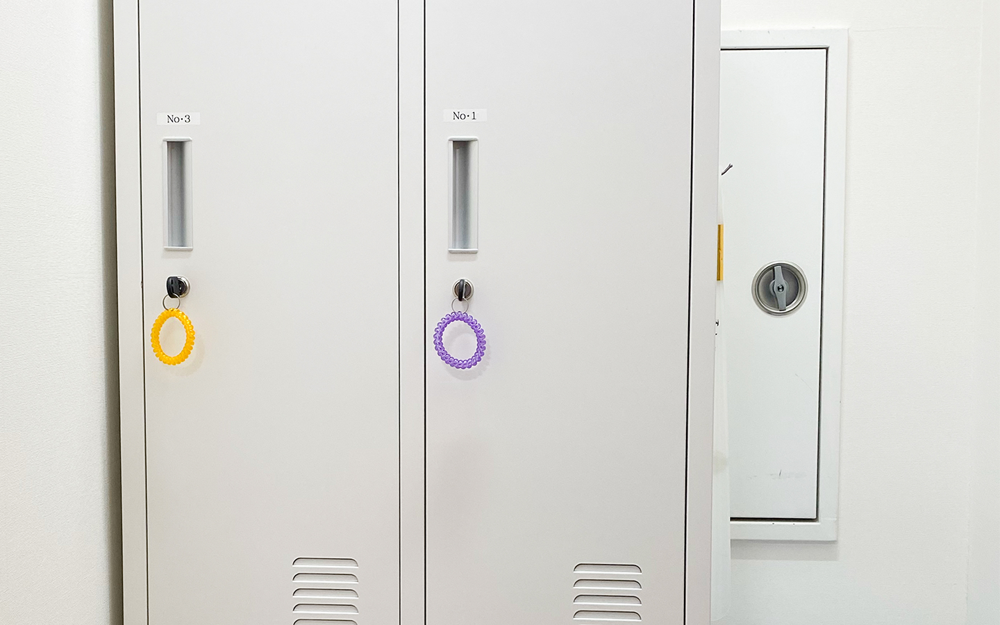 以前のダイヤル式から鍵付きに変更し、カラフルなゴムバンドを鍵に付けています。検査は病気を見逃さないために重要です。またキレイで鮮明な写真を撮るためにも検査着に着替えていただきますようご協力をお願いいたします。