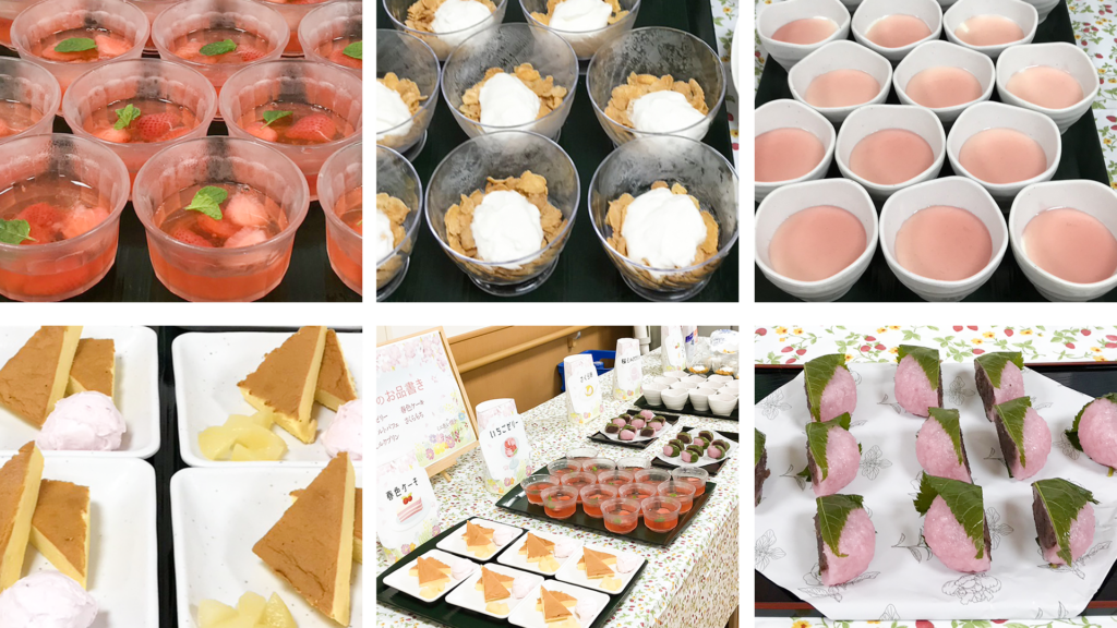 桜のシーズンは終わってしまいましたが、お花見気分になるように、彩り豊かなおやつをご用意しました!