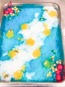 今月は、涼しさを演出できればと「天の川スコップゼリー」や「くず饅頭」などをご用意しました。