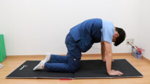 - 四つ這いの姿勢になり、股関節の下に膝、肩関節の下に手をつき、均等に体重を分散させます
