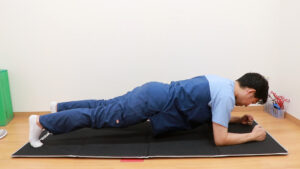 - 肩関節の下に肘を置き、膝を伸ばして足先と膝で体重を分散させます