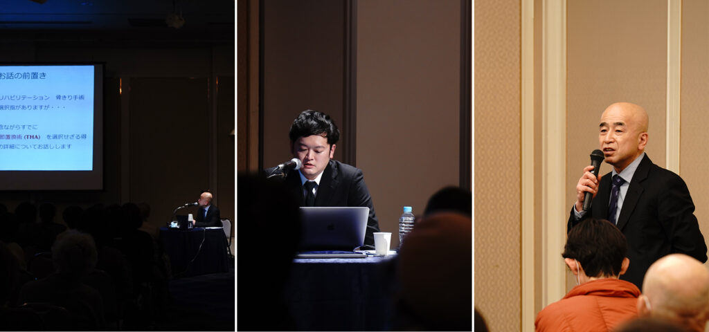 当日は、満席に近いほど多数の来場があり、人口股関節置換術の今昔、ご自宅でも実践できるエクササイズの方法などをご紹介しました。