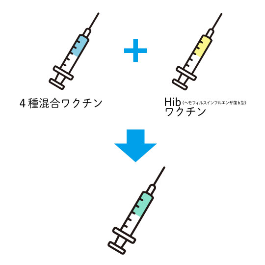 従来の百日せき、ジフテリア、破傷風、ポリオを予防する4種混合ワクチンにHib(ヘモフィルスインフルエンザ菌b型)ワクチンを加えたものです。