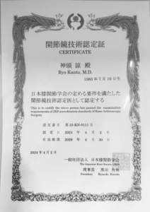 日本膝関節学会の関節鏡技術認定制度は、膝関節の関節鏡視下手術において一定の高い基準を満たした医師を認定するものです。