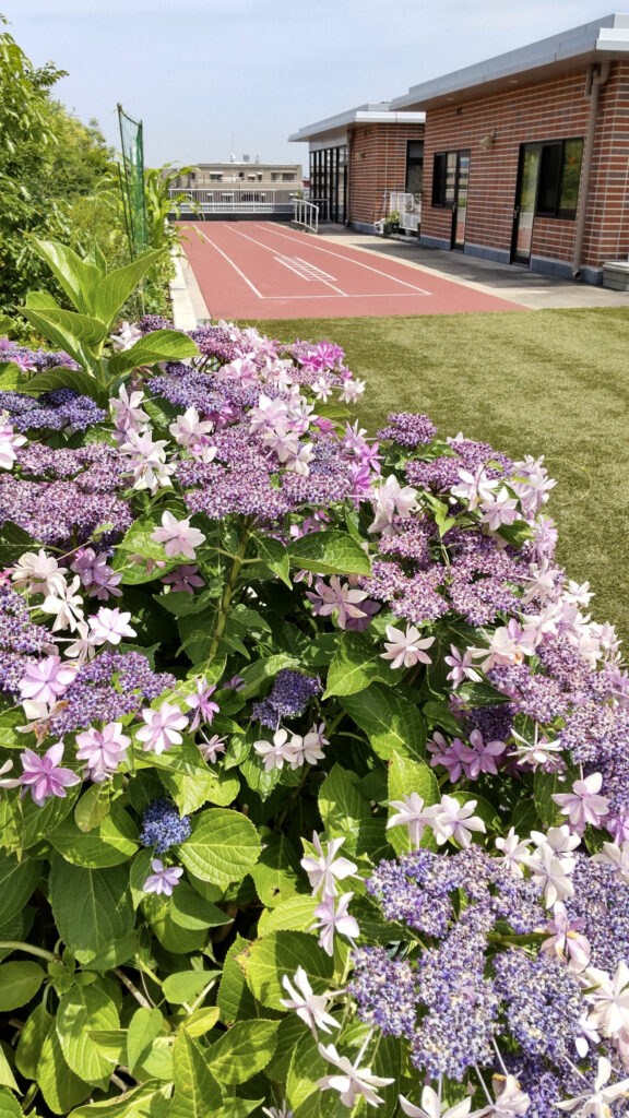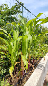 「あじさい」は天候の影響もあるのか、いつもより長く咲き続けていますが、「とうもろこし」は夏の日差しを待ちわびています。