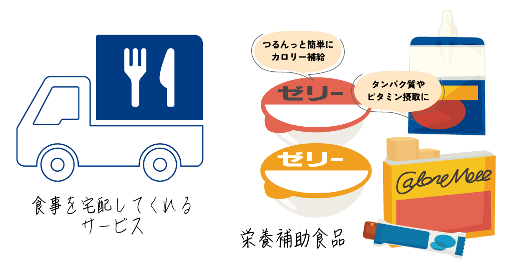 夏の暑さの影響で、食事を作ることが大変だと感じたときは、宅食サービスを利用することも選択肢のひとつです。ほかにも、最近ではスーパーなどで「高カロリーの補助食品」が陳列されるようになっています。食欲がないときにデザート感覚で食べやすい商品も多いです。