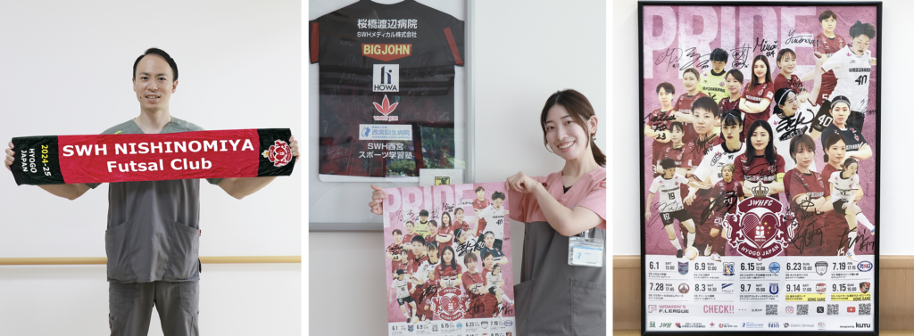 病院からのお知らせ SWHレディース西宮からサイン入りユニフォームなど寄贈いただきました! 2024/07/10 パートナー契約をしているSWHレディース西宮様から「選手サイン入りユニフォーム」「選手サイン入りポスター」「公式マフラータオル」を寄贈いただきました。 SWHレディース西宮は、2024年は全日本女子フットサル選手権にて優勝をしているチームです。今春発行した広報誌では三津山選手に撮影協力をいただき、誌面にも掲載しています。 寄贈いただきました、ユニフォーム・ポスターは5階リハビリテーション室に展示しております。 周囲の患者さんが映り込まないように配慮いただければ撮影可能としています。 引き続き、スタッフ一同応援していきます!