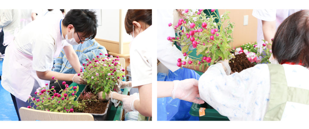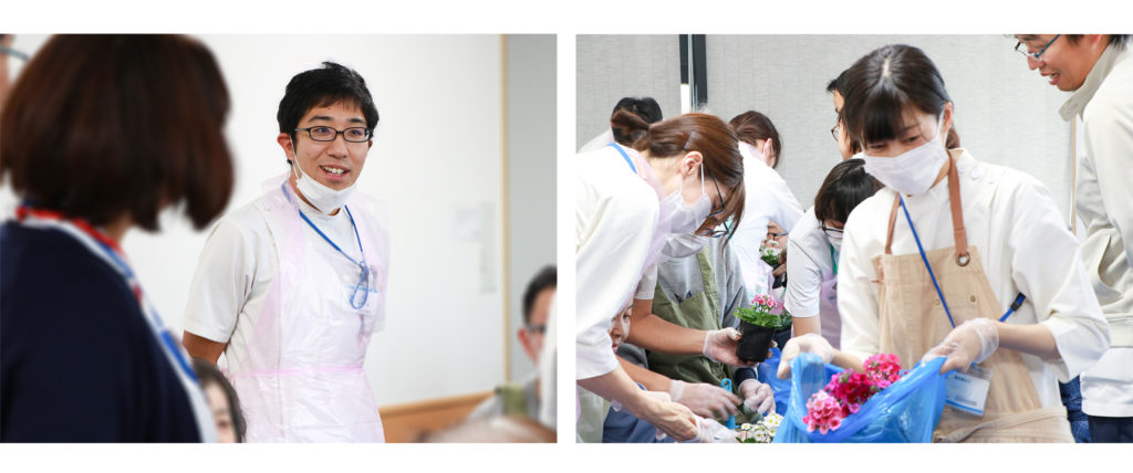 植え替え作業をはじめると、患者さんの楽しそうな声をたよりに看護師も一緒に参加する姿が目立ち、病棟全体で盛り上がりました。