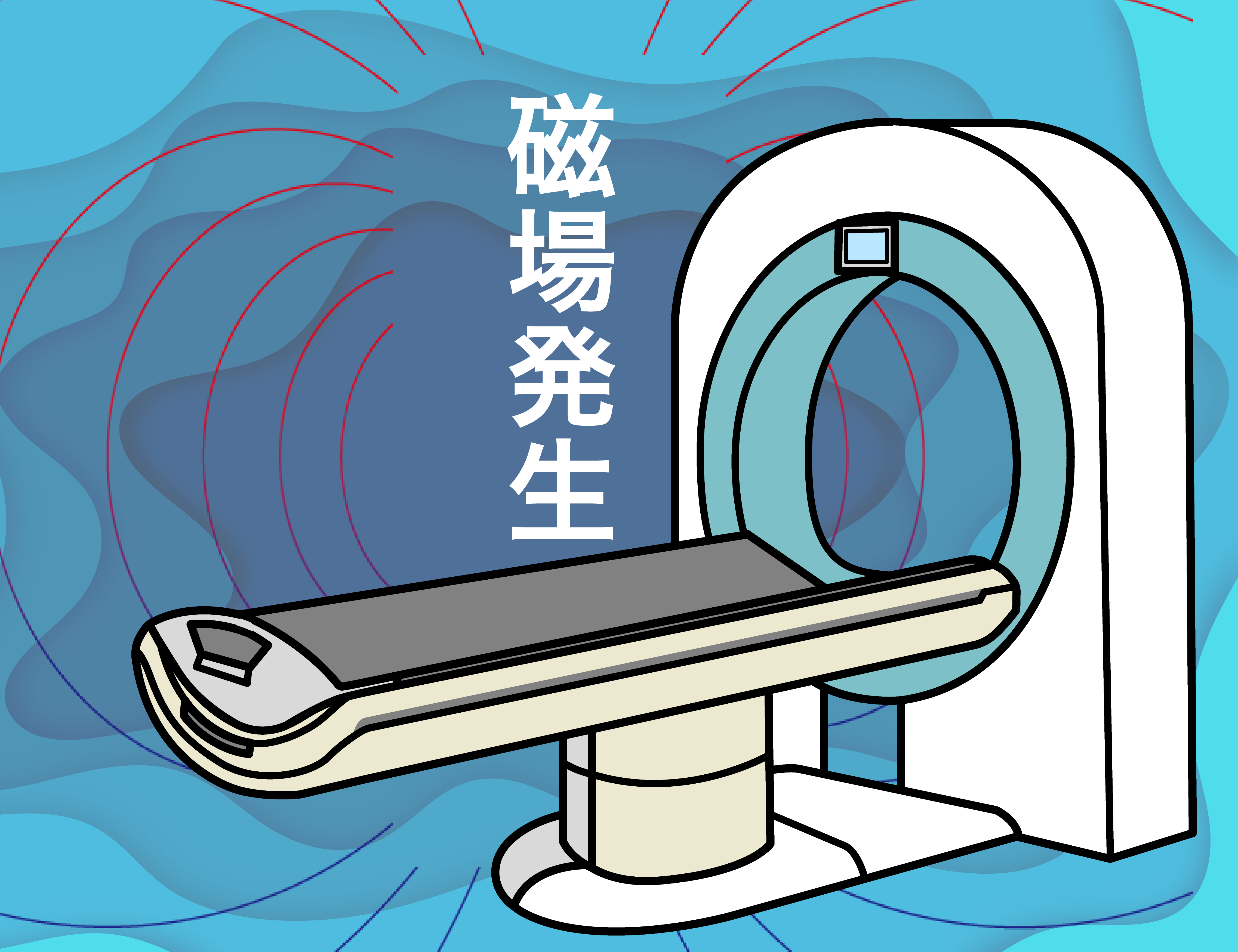 MRI室内には「強力な磁場と電場」が発生しているため、金属類・機械類の持ち込みが一切禁止されています。