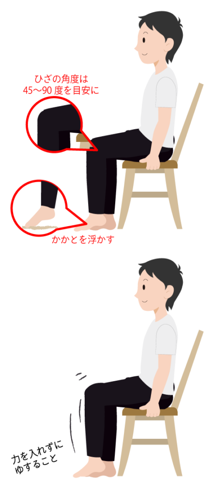 「びんぼうゆすり」を力強くしている人を見かけますが、そうではなく「足の力を抜いて小刻みに揺らす」動作を心がけましょう。