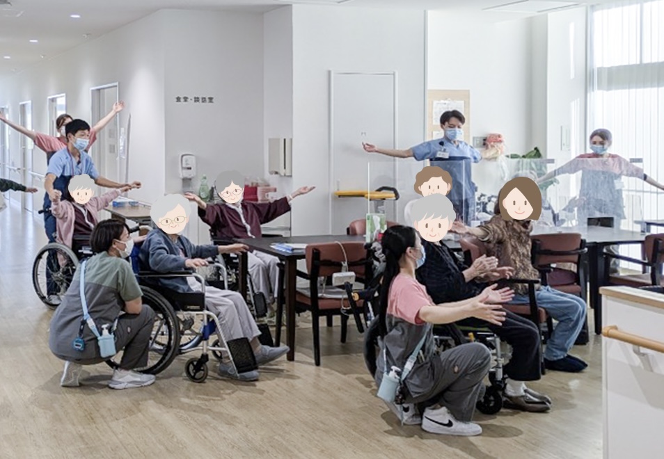 無理なく全身の筋肉や関節を動かすことができます。私たちの病棟では、マンネリ化しやすい入院生活の気分転換として、ラジオ体操を取り入れています。