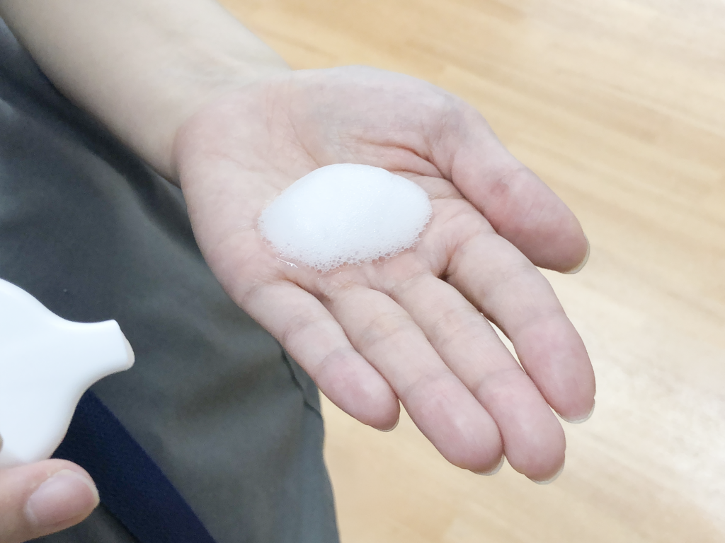 アルコール消毒の「泡タイプ」を使って適量についてご紹介します。