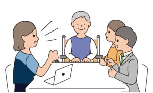 当院では、退院後も地域で安心して生活できるよう、介護が必要な患者様に対し、地域のケアマネージャーをはじめとする在宅サービススタッフと連携を行っています。