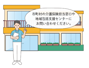 「居宅介護支援事業所」の所在地については、市町村の介護保険担当窓口や地域包括支援センターにお問い合わせください。