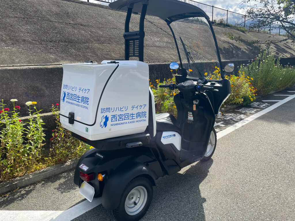 このたび、訪問リハビリテーション部門で使用する社用車として、新たに「電動三輪バイク」を導入しました。電動三輪バイクは、ガソリンやエンジンオイルを必要とせず、環境への負荷が少ないことに加えて、静音性にも優れています。