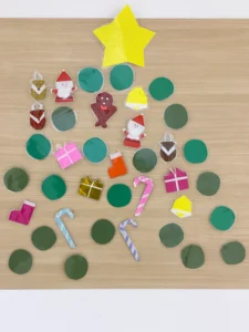 2階病棟は作業療法リハビリで壁にクリスマスツリーを作成
