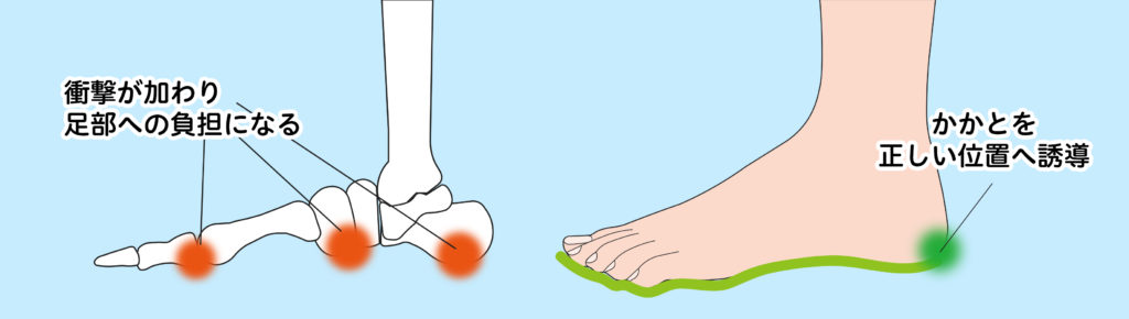- インソール(中敷)を使用して正しい位置へかかとを誘導する