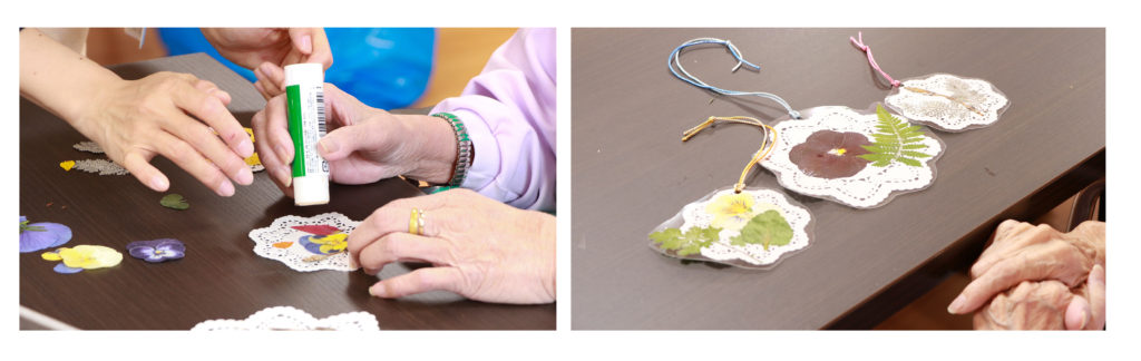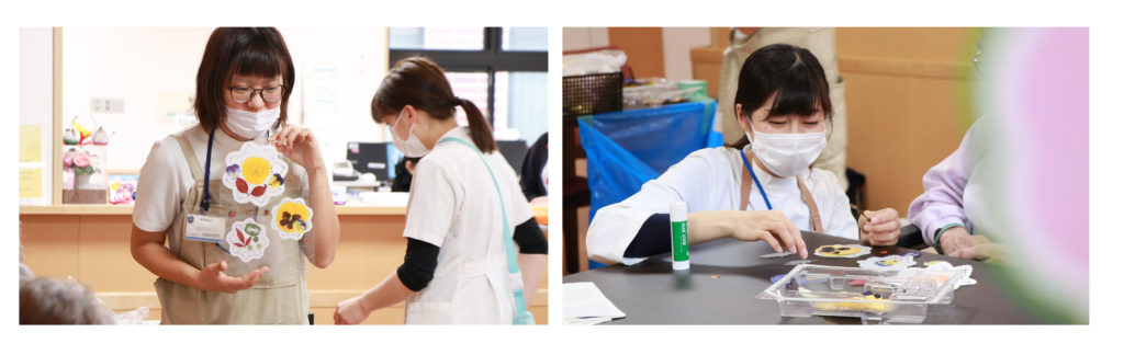 3月は、園芸療法で育てた花をアレンジした作品づくりでした。