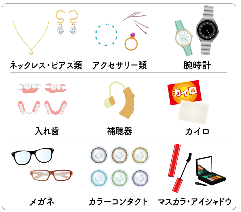 撮影部位に関係なく「腕時計やアクセサリー類、メガネやカラーコンタクト」はすべて外していただくことになりますのでご注意ください。