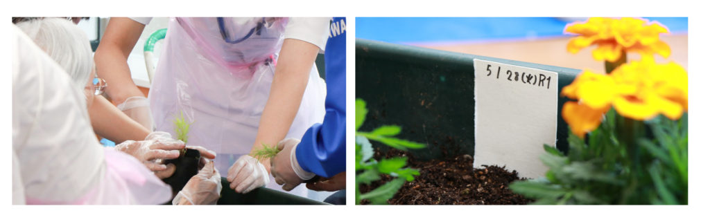 今月は室内で「マリーゴールド」と「コキア」の植えつけ作業を行いました。