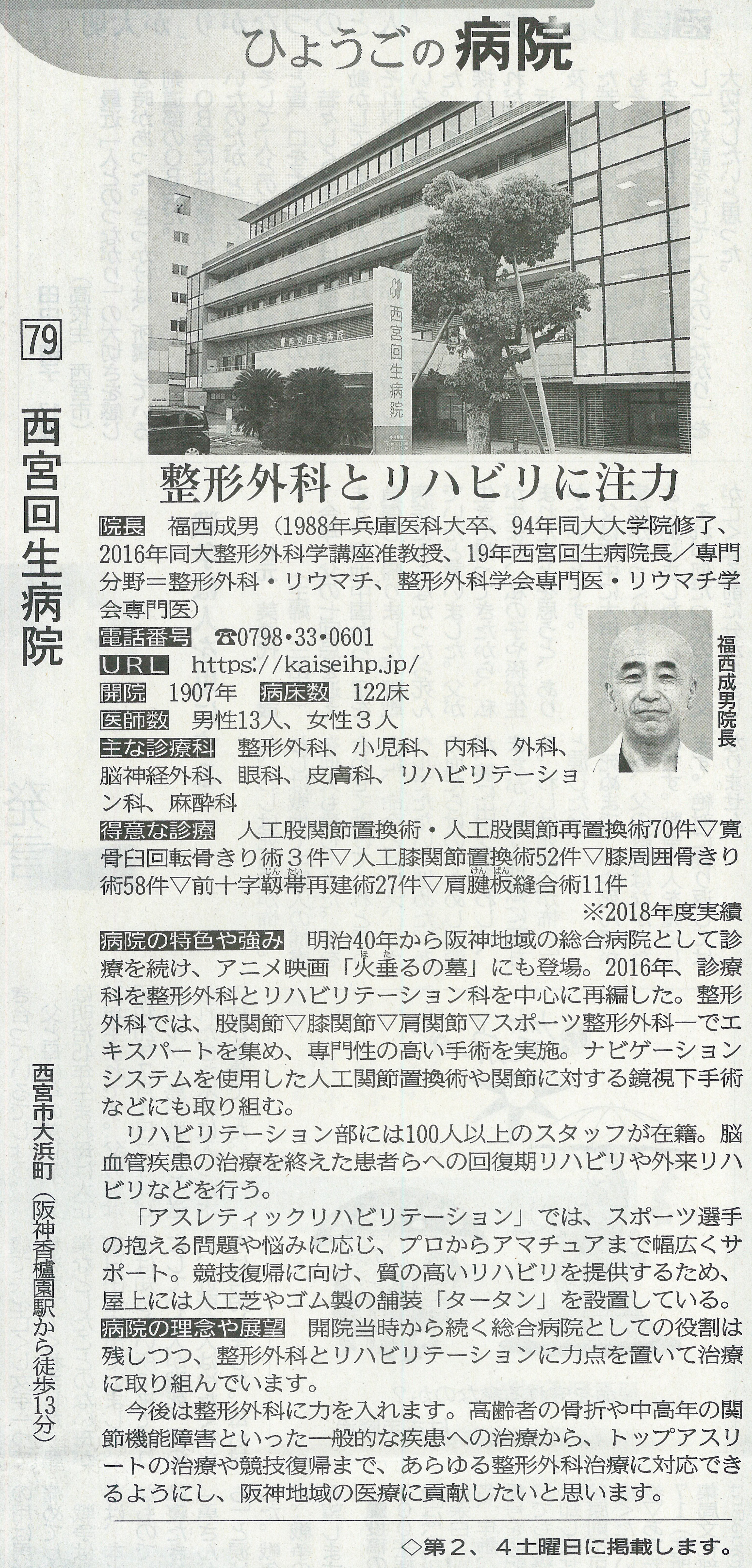 2019年8月10日(土)神戸新聞朝刊「ひょうごの病院」において当院が紹介されました。