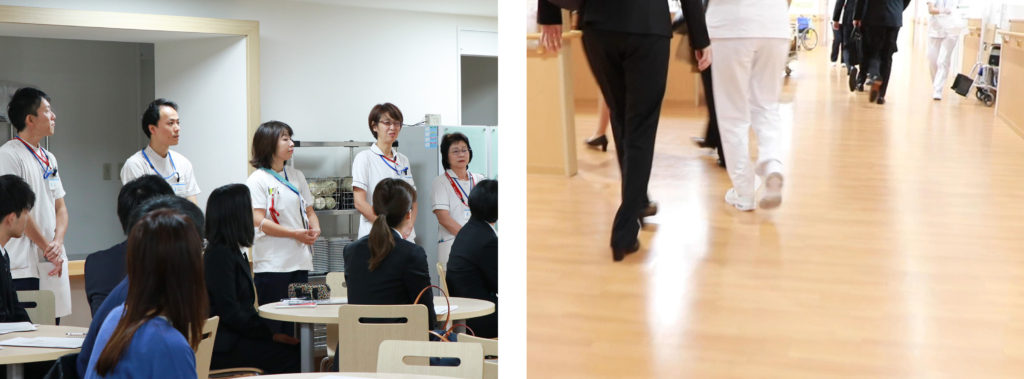 病院見学会のご案内 【11月開催】病院見学会を開催しました 2019/11/16 2019年11月16日に「病院見学会」を開催しました。 当日は20名を超える方に参加いただき、病院概要のご紹介後は職種別での院内見学と質疑応答を行いました。 次回の開催予定は2020年1月18日(土)となります。 お申し込みの際には「職種・新卒(学校名)または既卒・その他質問事項」を必ずご記入ください。詳細は各ページをご確認ください。 病院見学会のご案内はこちら お申し込みページはこちらをご確認ください