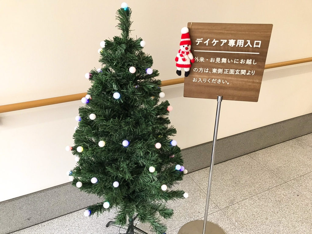 あわせて、デイケアの入り口にクリスマスツリーや室内の一部にリースなどの飾りつけを行いました。今年は、12月のおやつバイキング内でデイケアの「クリスマス会」ができるように準備を進めています。
