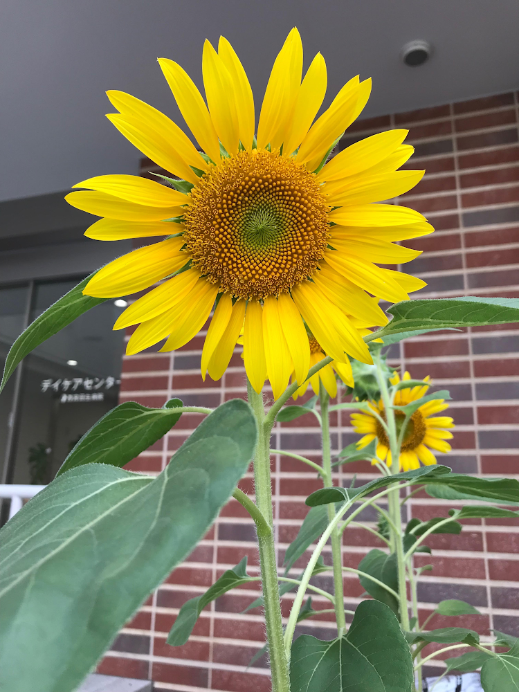 利用者さんと心待ちにしていた「ひまわり」の花が開花しました。